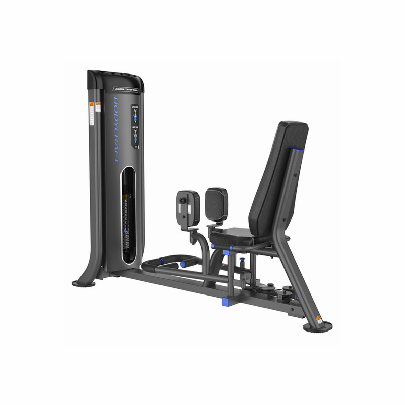 Achieve stronger, more defined leg and hip muscles with the BODYCRAFT EXP Series DIO-150 Inner/Outer Thigh machine. This highly versatile equipment offers a wide range of thigh-focused exercise variations, allowing users to efficiently train both the inner and outer thigh muscles. The thoughtfully designed thigh pads swivel in or out based on the exercise, adapting seamlessly to the user’s body movements to reduce pinch points and ensure a safe, comfortable workout.