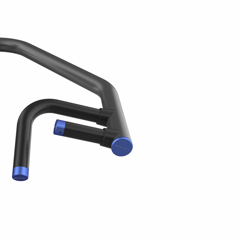 Ergonomic Grips: Thermoplastic rubber with aluminum end caps for durability and comfort