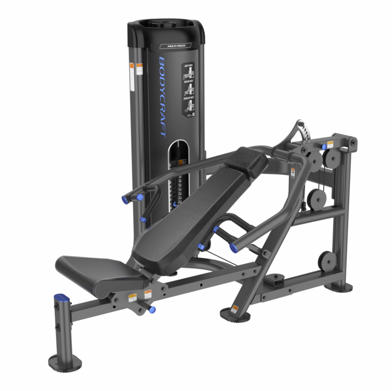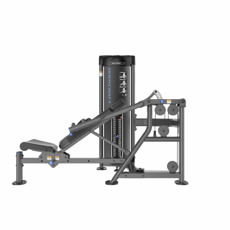 Unlock the full potential of your strength training with the BODYCRAFT EXP Series Multi Press Machine This advanced selectorized machine is engineered to facilitate a diverse range of pressing exercises, including shoulder, incline, and flat presses.