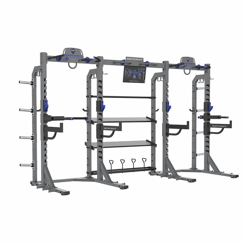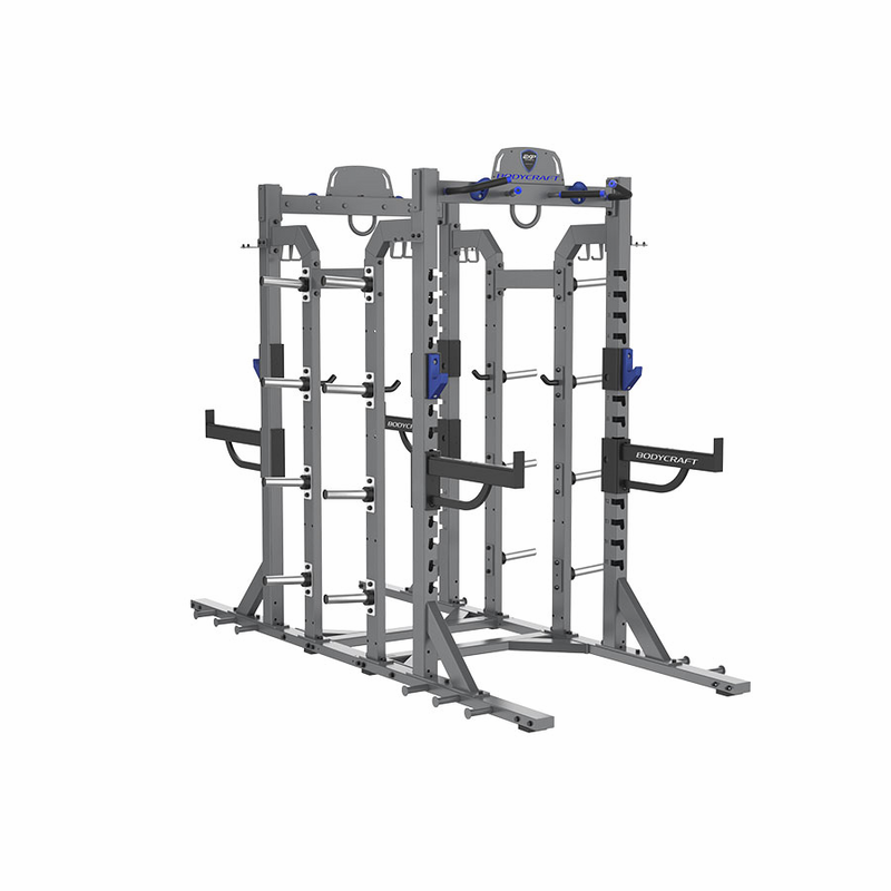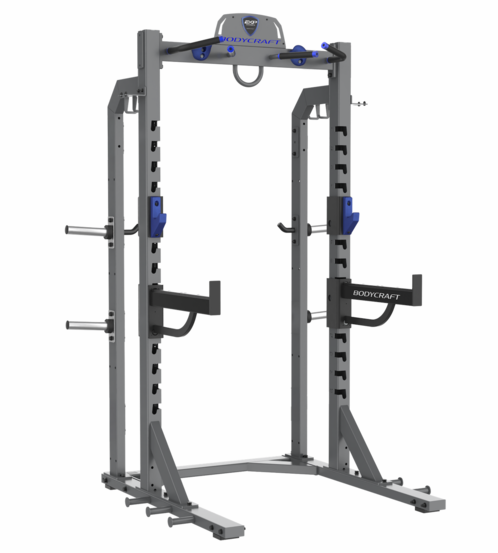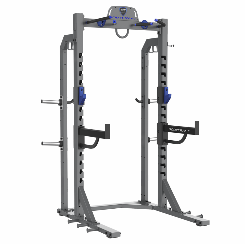 Aesthetically pleasing with blue aluminum accents and a sleek diamond gray and textured black electrostatic powder-coated finish, the EXP Half Rack is not only functional but also visually appealing. Rated for up to 1,000 LBS, it meets the demands of serious athletes and fitness enthusiasts alike. Customize your setup further with optional attachments like dip bars, landmine options, and additional storage trays. Whether youre in a home gym or a commercial facility, the EXP Half Rack is the ultimate solution for maximizing your strength training potential.