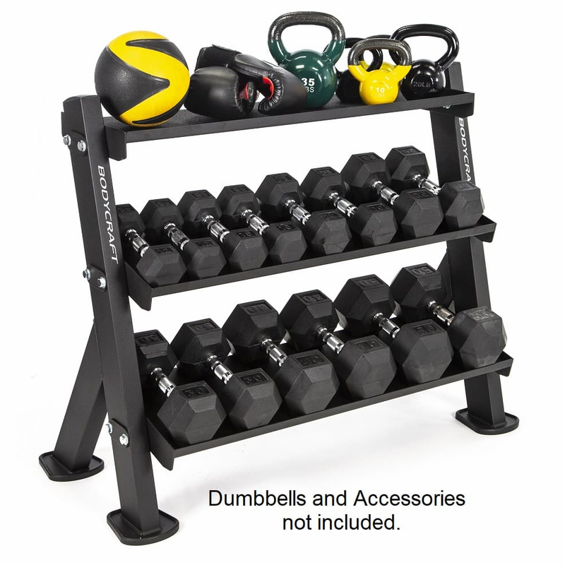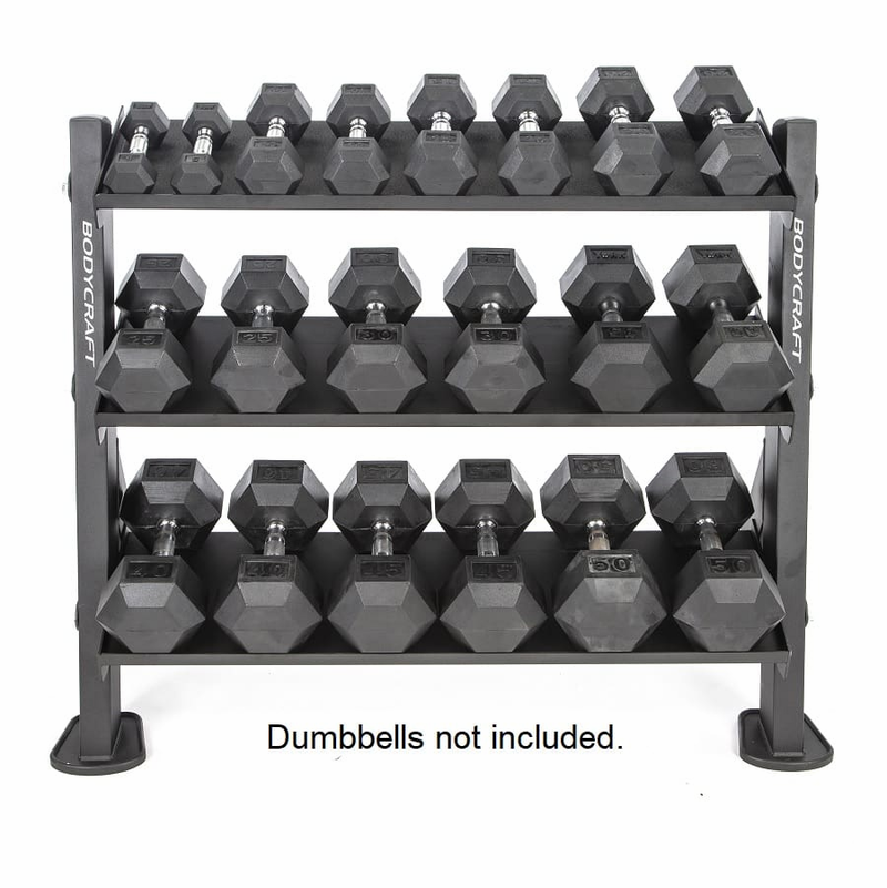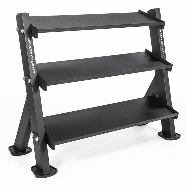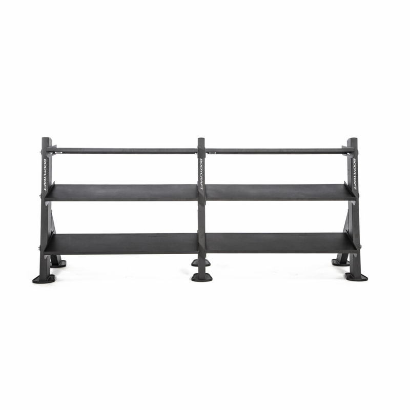 The rack can be “daisy-chained” to additional racks to create a longer storage solution. With its reinforced plate steel trays and versatile assembly options, the BODYCRAFT F530 3-Tier Dumbbell Rack is the ultimate storage solution for any fitness space.