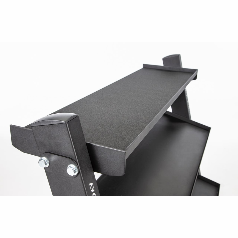 Designed for both commercial and home use, the BODYCRAFT F530 3-Tier Dumbbell Rack is engineered to provide maximum safety, flexibility, and accessibility. Rated to support up to 2,100 lbs (700 LBS per tier), this rack features three solid trays with no pinch points, ensuring user safety.