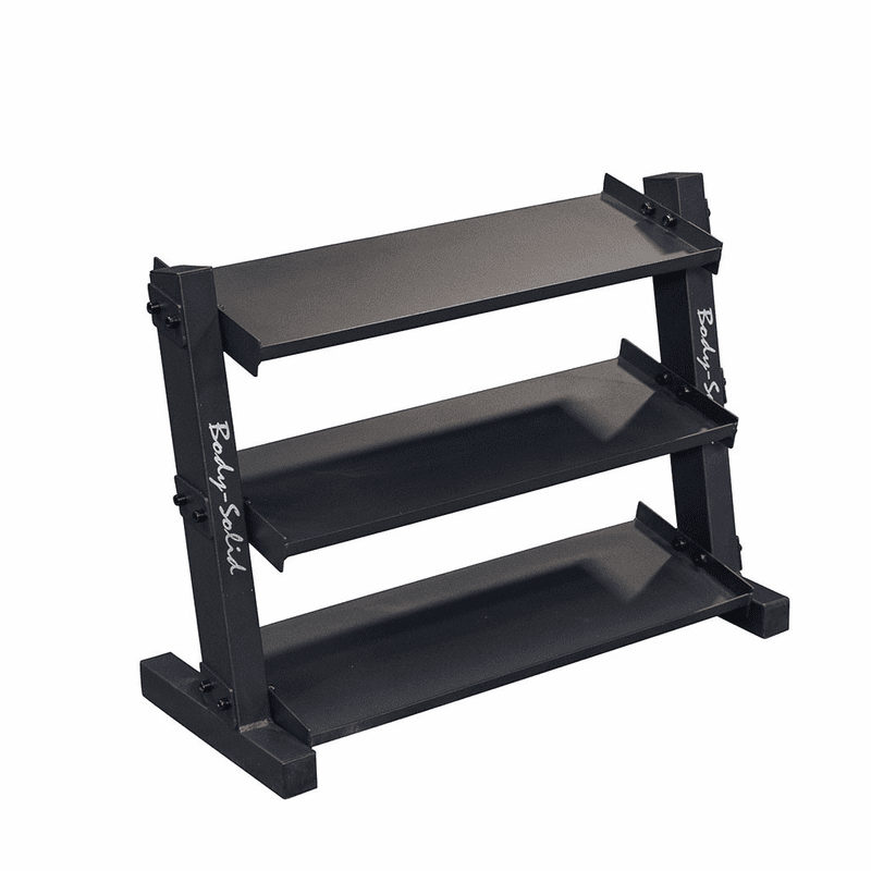 The Body-Solid GDR34B Dumbbell Rack is expertly designed to hold 12 pairs of vinyl or neoprene dumbbells (1-15 lbs).