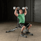 Perform bench presses, shoulder presses, ab crunches, triceps kickbacks, dips, seated biceps curls, and more easily and effectively.
