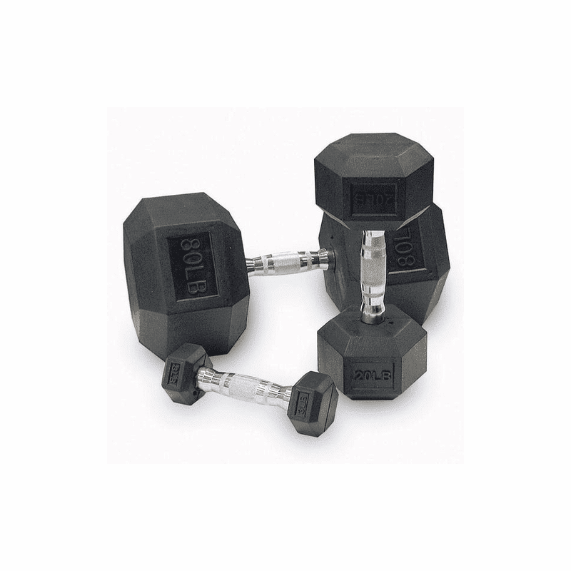 Body Solid Rubber Coated Dumbbells feature durability that simply can't be matched. It resists cracking and fading while protecting floors and equipment. Made from solid cast iron with a 6-sided anti-roll design and encased in virgin rubber, this dumbbell is stylish as it is durable.