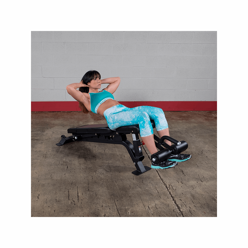 Just like the popular Body-Solid SFID325 Adjustable Bench, the SFID425 features thick, durable padding and multiple independent back/seat adjustments. The seat pad can be adjusted to flat, 10, and 18 degrees; while the bench offers seven separate adjustments including flat, 15, 30, 45, 60 and 80 degrees as well as a -18 degree decline.