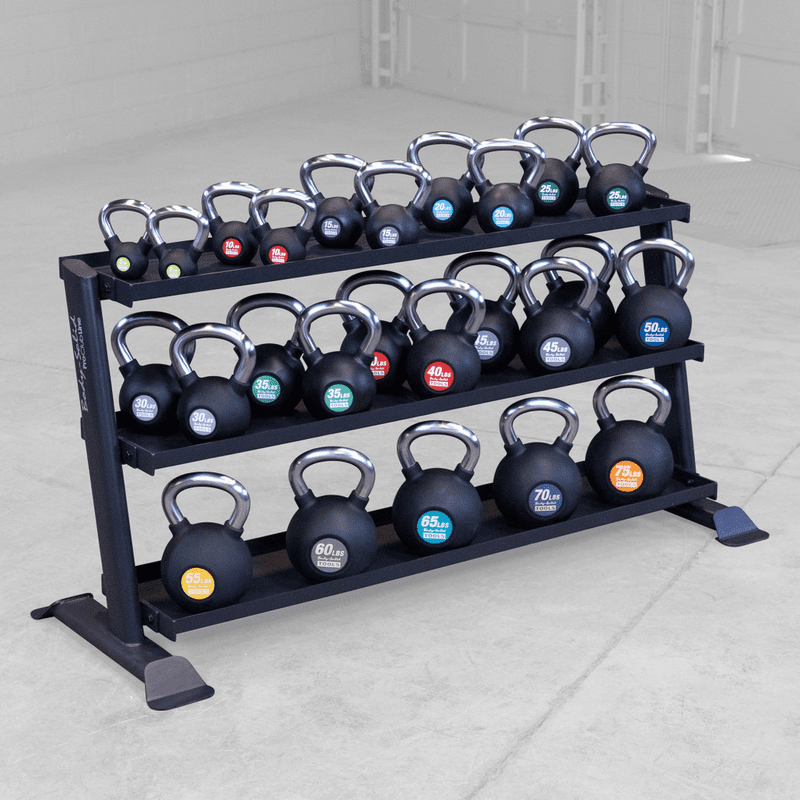 Each tier on the SRK200 offers a generous 62" x 13" storage space, making it the perfect fit for everything from vinyl-dipped kettlebell sets to professional-grade powder-coat kettlebells.