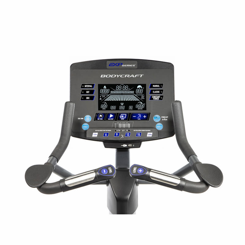 The U1000 also offers 30 resistance levels, heart rate hand pulse grips, handlebar resistance controls, and a BODYCRAFT CONNECT module for seamless app connectivity on your smartphone or tablet, making it the ideal choice for those seeking a comfortable, high-performance, and entertaining exercise experience.