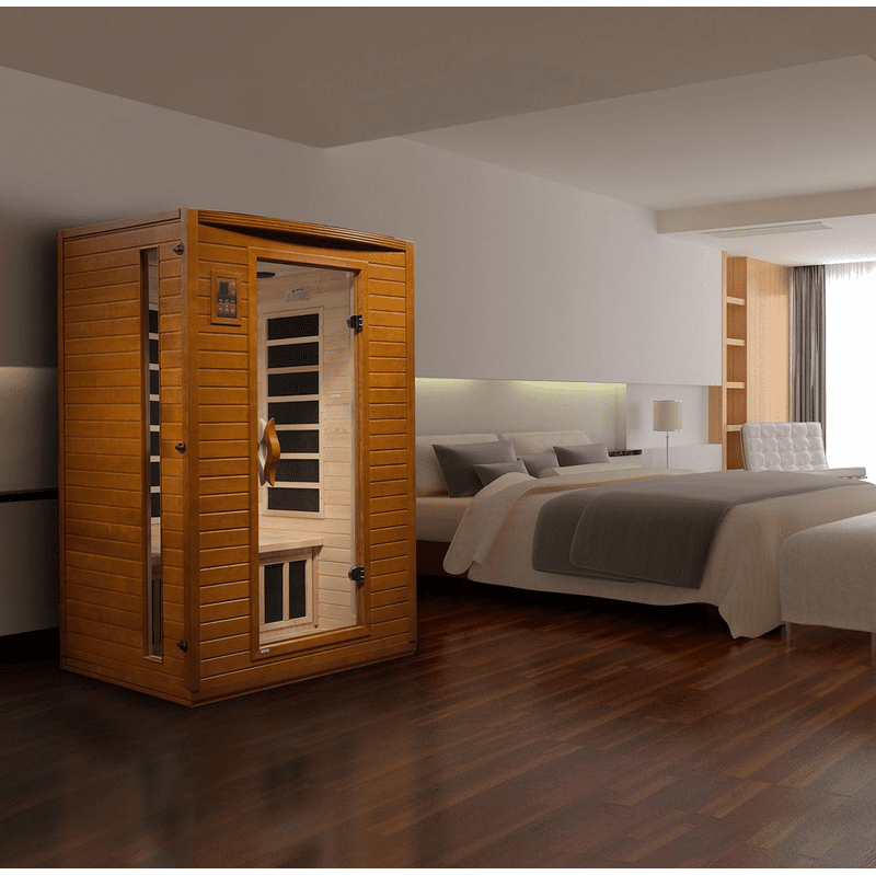 Dynamic Saunas are constructed of environmentally-friendly Canadian Hemlock wood planks. Our saunas feature energy efficient Low EMF FAR infrared heating panels that help relax and rejuvenate the body. Dynamic Saunas can be installed on carpet or any indoor location including basements, master baths, walk in closets or can be added to a fitness room.