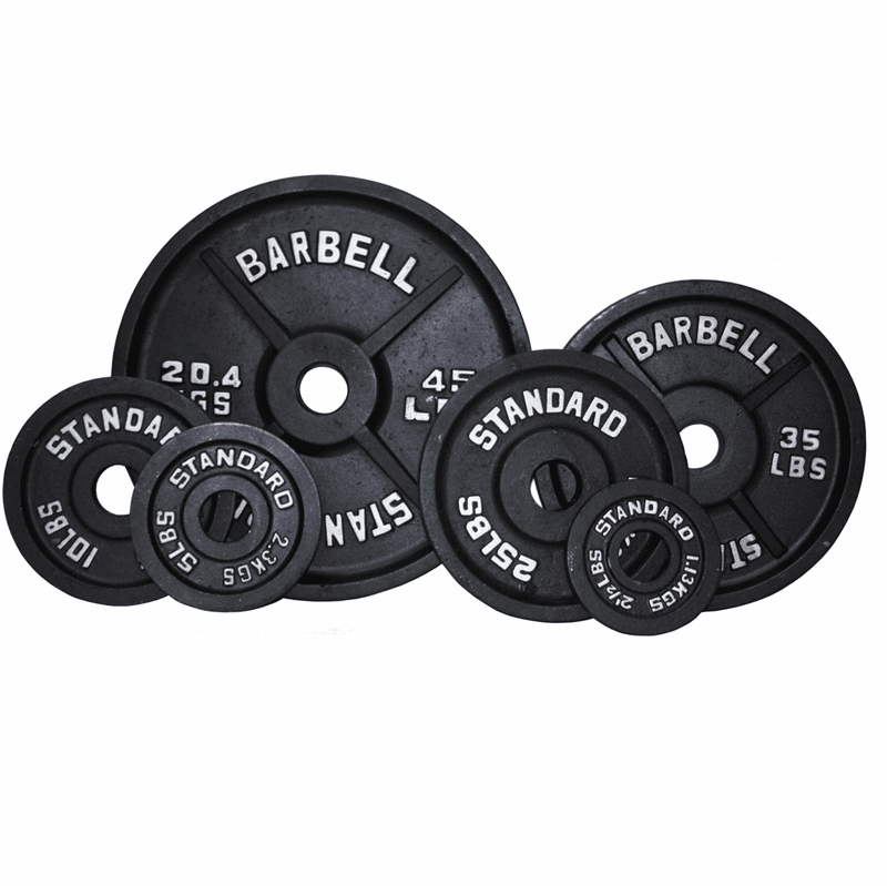 355lb Set Includes: (4) 45lb; (2) 35lb; (2) 25lb; (2) 10lb; (6) 5lb; (2) 2.5lb Plates